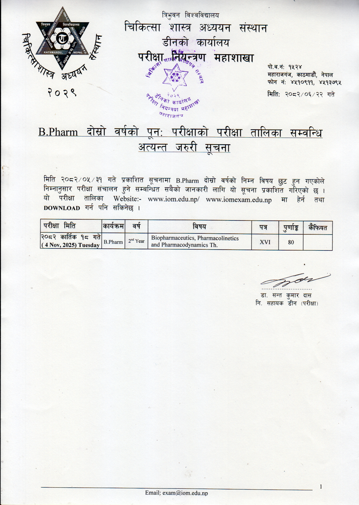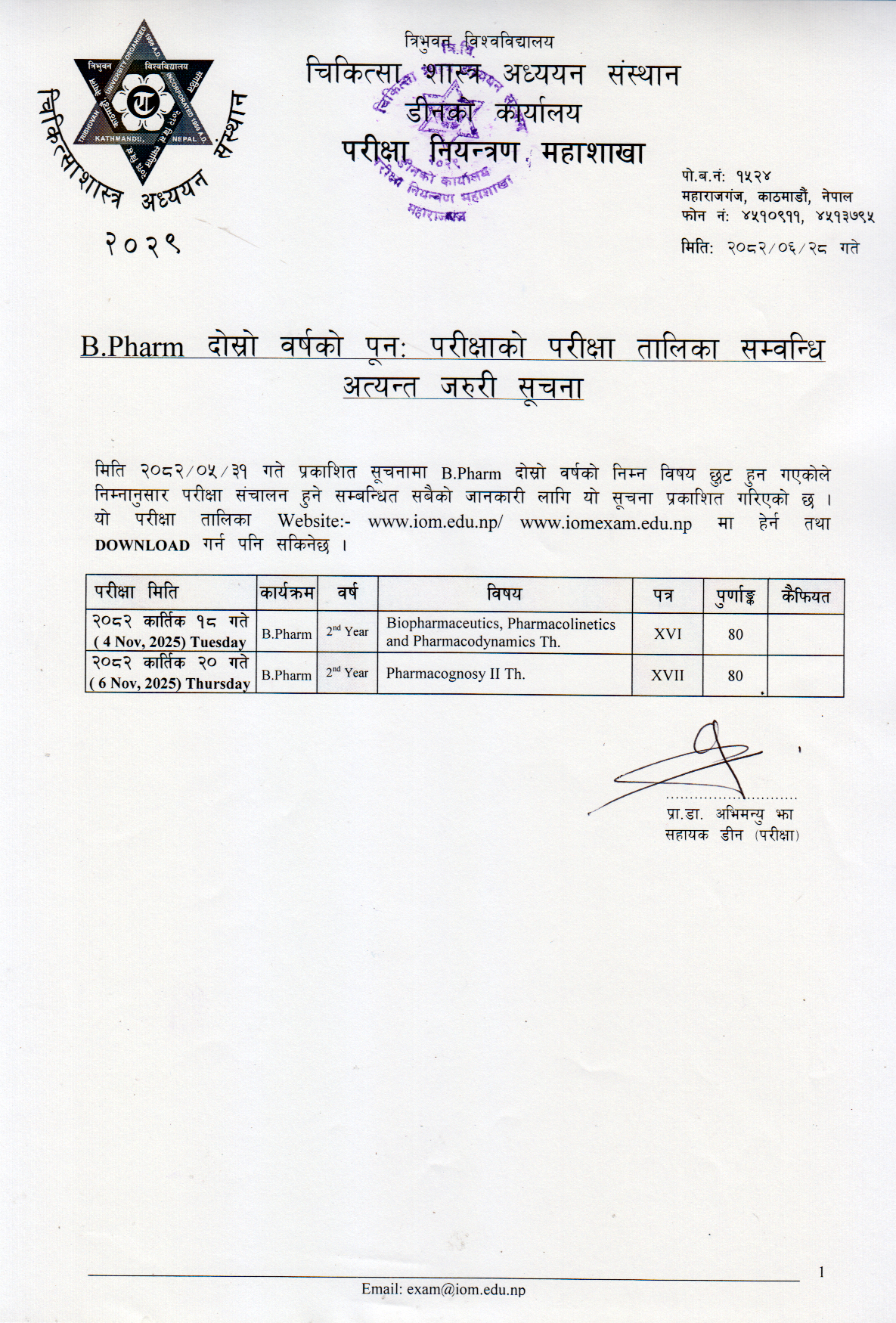 Routine of B.Pharmacy 2nd Year Supplementary Exam 2082