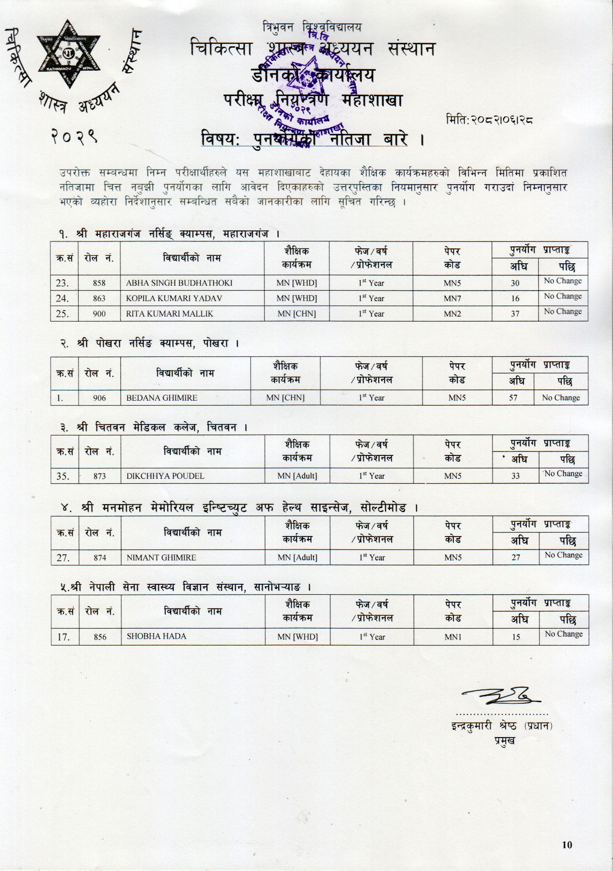 Result of MDGP & MD Psychiatry 3rd Year and MHPE, MPHN & MPH 1st Year supplementary Exam 2082