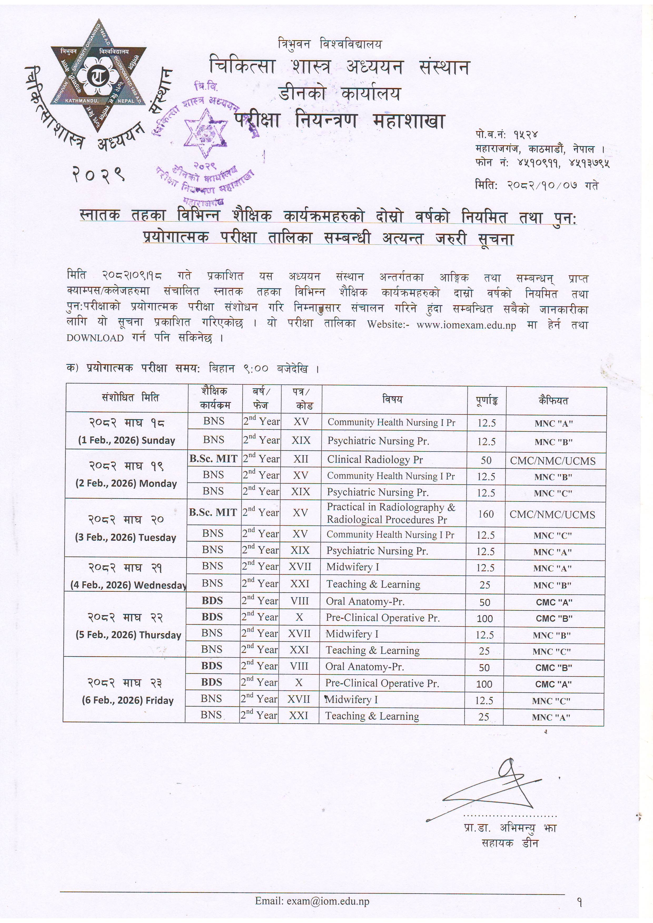 Practical Routine of 2nd Year Various Programs Supplementary Exam 2082