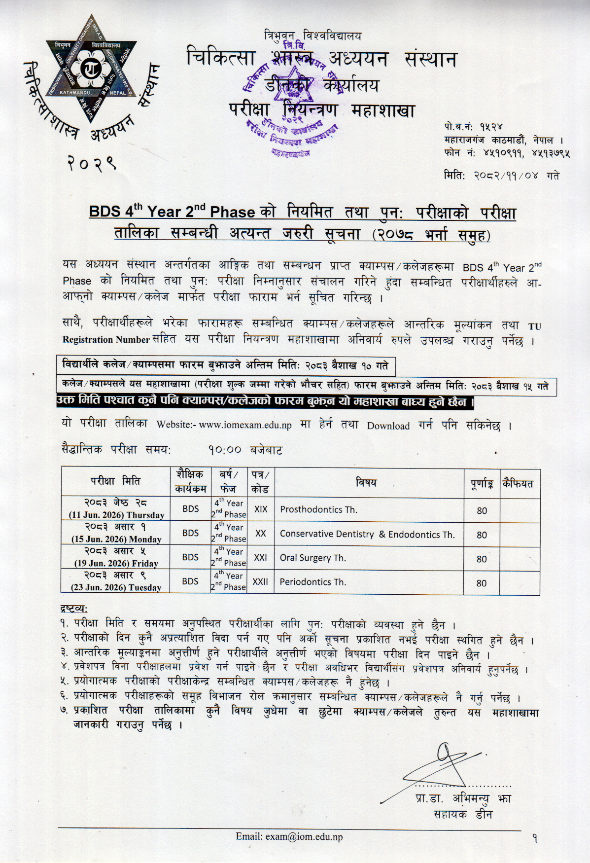 Phone:+977-01-4413729 / Fax:+977-01-4424646 / Email: exam@iom.edu.np