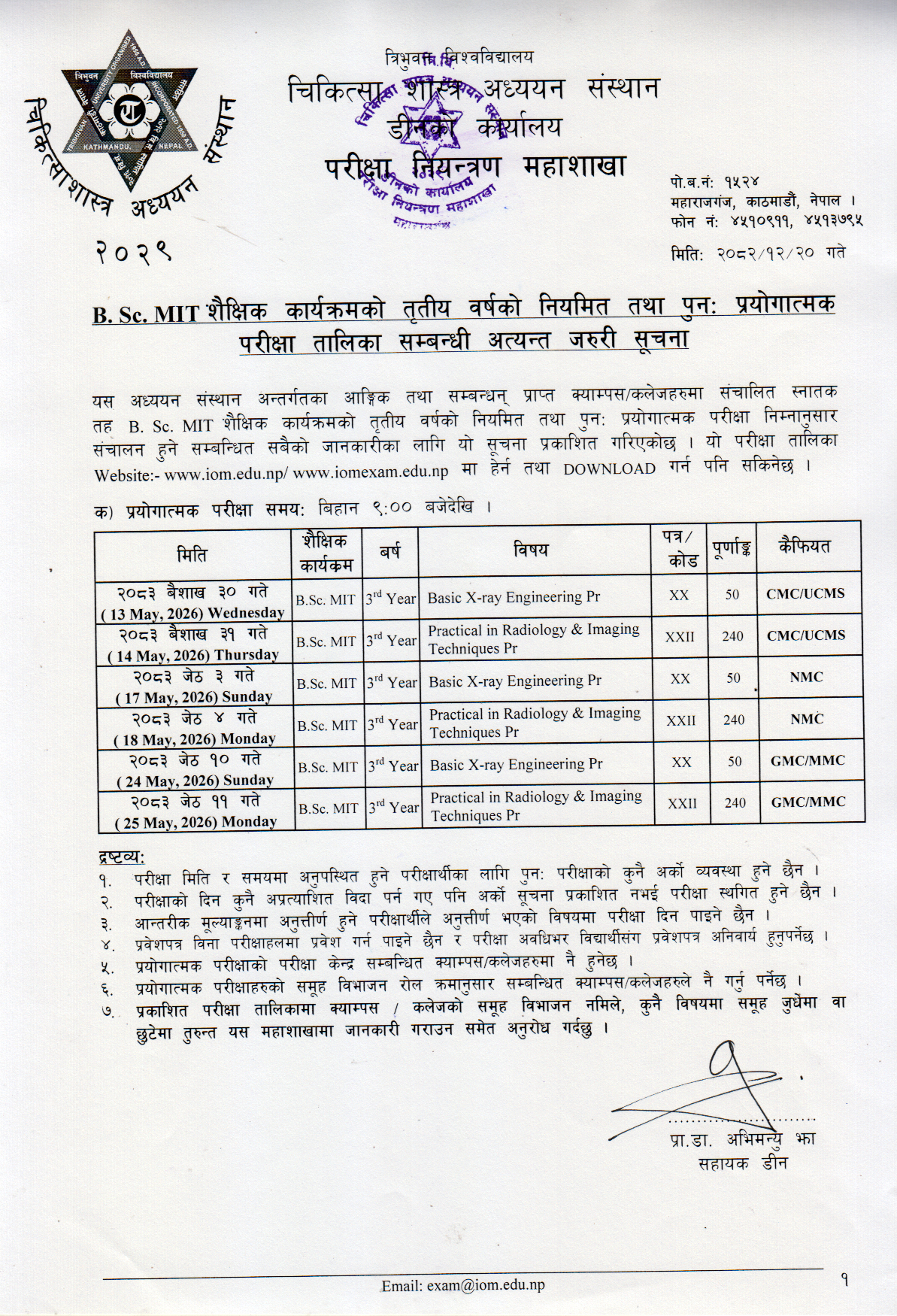 Practical Routine of the B.Sc. MIT 3rd Year Regular and Supplementary Exam 2083