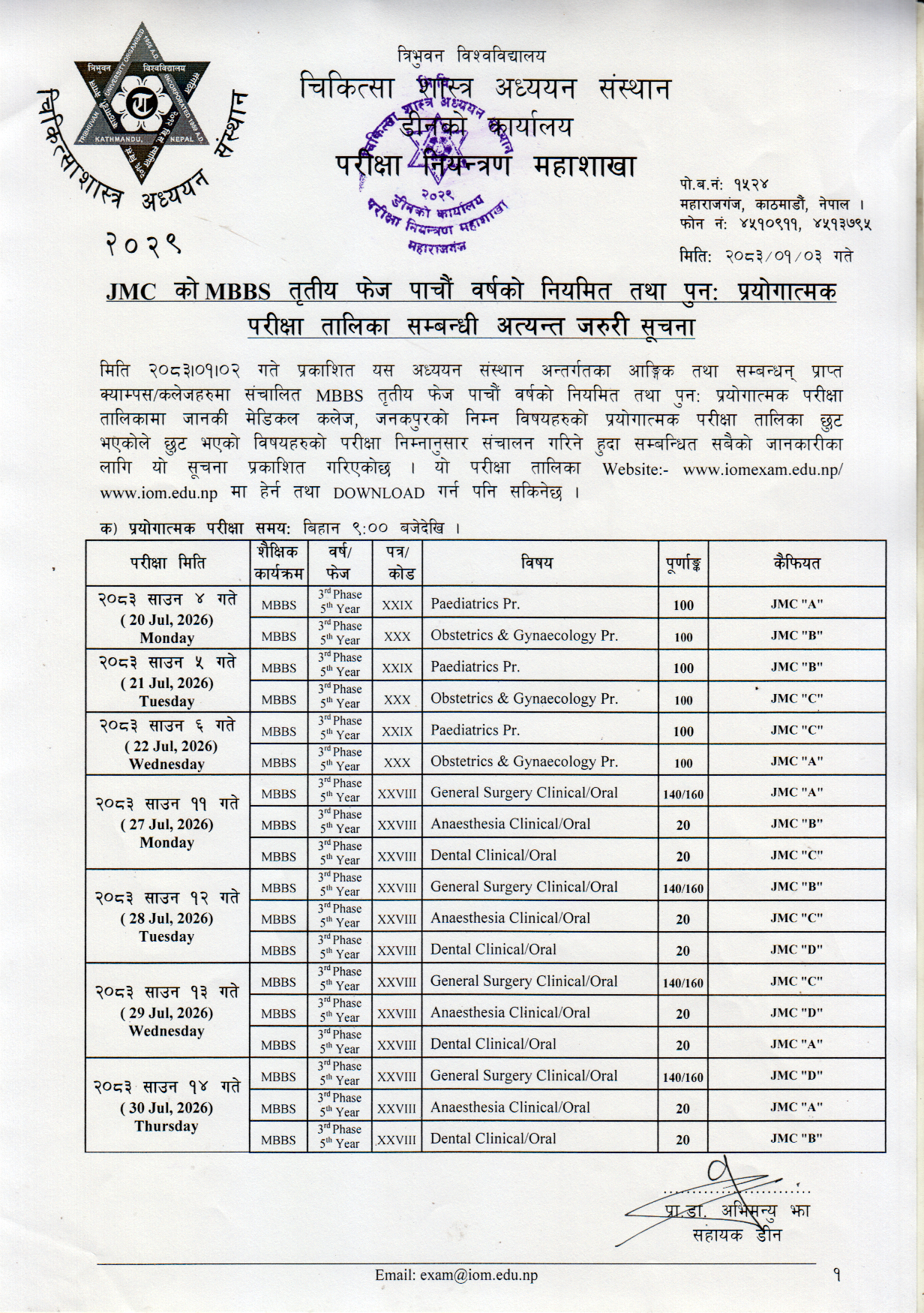 Practical Routine of the MBBS 3rd Phase 5th Year Regular Exam 2083 of the Janaki Medical College